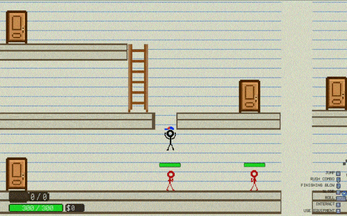A 2D StickFigure Beat 'em up/ Platformer game where you control a small stick figure character and fight enemies in a randomly generated dungeon. Each playthrough can result in a different looking dungeon each time, similar to roguelike games like The Binding of Isaac! Perform combos to deal damage to your foes, and pick up items that will increase your stats, or give you an object that you can use for your own benefit!